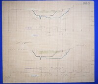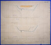 Έγχρωμο σχέδιο προόδου εκσκαφικών εργασιών (μηκοτομή) χιλ. σημείου 1480-90 με μελάνι και έγχρωμο μολύβι σε χαρτί μιλιμετρέ.
