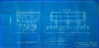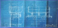 Σχέδιο σιδερένιου αυτοανατρεπόμενου βαγονιού σε μπλε χαρτί (κλίμακα 1:10) του δημιουργού Orenstein & Koppel.