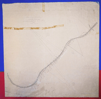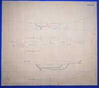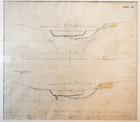 Έγχρωμο σχέδιο προόδου εκσκαφικών εργασιών (μηκοτομή) χιλ. σημείου 1380-90 με μελάνι και έγχρωμο μολύβι σε χαρτί μιλιμετρέ.