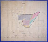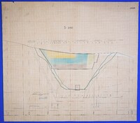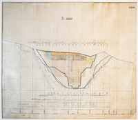 Έγχρωμο σχέδιο προόδου εκσκαφικών εργασιών (μηκοτομή) χιλ. σημείου 5200 με μελάνι και έγχρωμο μολύβι σε χαρτί μιλιμετρέ.