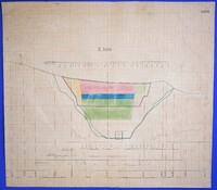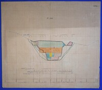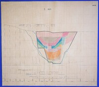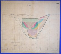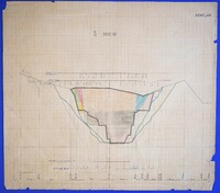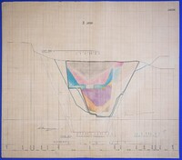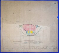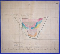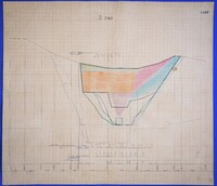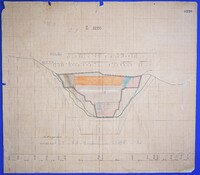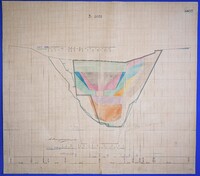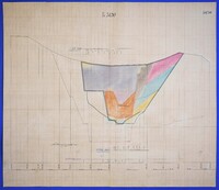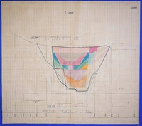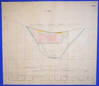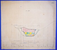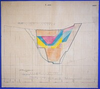 Έγχρωμο σχέδιο προόδου εκσκαφικών εργασιών (μηκοτομή) χιλ. σημείου 5070 με μελάνι και έγχρωμο μολύβι σε χαρτί μιλιμετρέ.