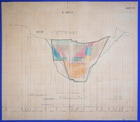 Έγχρωμο σχέδιο προόδου εκσκαφικών εργασιών (μηκοτομή) χιλ. σημείου 4980 με μελάνι και έγχρωμο μολύβι σε χαρτί μιλιμετρέ.
