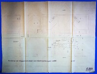 Χαρτόνι διπλωμένο σε τρία μέρη με σχέδια σε διάφορες κλίμακες.