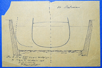 Σχέδιο βυθοκόρου σε μπλε χαρτί. Δημιουργήκε στην Ιταλία από τον D. Rodocanachi.