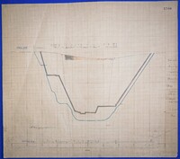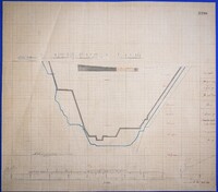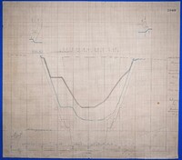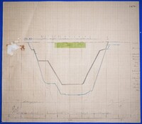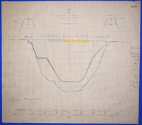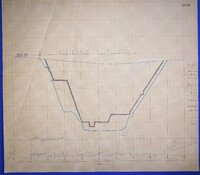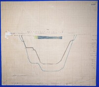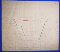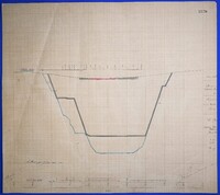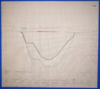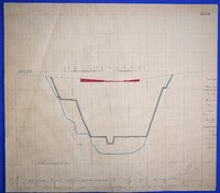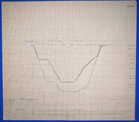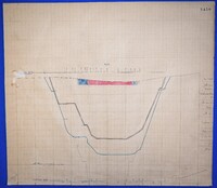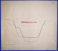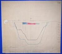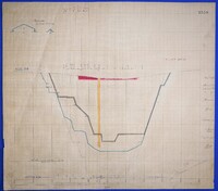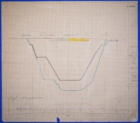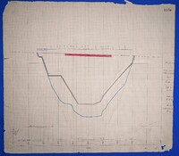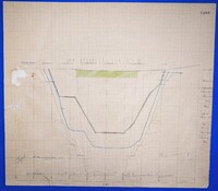Έγχρωμο σχέδιο προόδου εκσκαφικών εργασιών (μηκοτομή) χιλ. σημείου 2370 με μελάνι και έγχρωμο μολύβι σε χαρτί μιλιμετρέ.