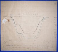 Έγχρωμο σχέδιο προόδου εκσκαφικών εργασιών (μηκοτομή) χιλ. σημείου 2290 με μελάνι και έγχρωμο μολύβι σε χαρτί μιλιμετρέ.