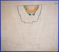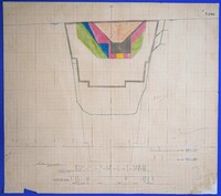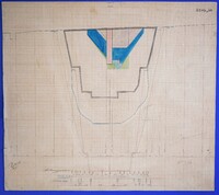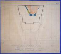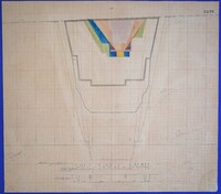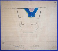 Έγχρωμο σχέδιο προόδου εκσκαφικών εργασιών (μηκοτομή) χιλ. σημείου 3370 με μελάνι και έγχρωμο μολύβι σε χαρτί μιλιμετρέ.