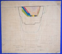 Έγχρωμο σχέδιο προόδου εκσκαφικών εργασιών (μηκοτομή) χιλ. σημείου 3310 με μελάνι και έγχρωμο μολύβι σε χαρτί μιλιμετρέ.