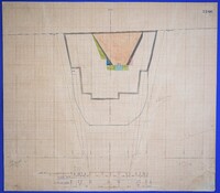 Έγχρωμο σχέδιο προόδου εκσκαφικών εργασιών (μηκοτομή) χιλ. σημείου 3270 με μελάνι και έγχρωμο μολύβι σε χαρτί μιλιμετρέ.