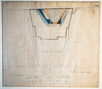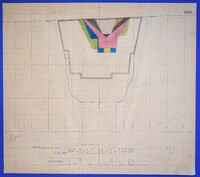 Έγχρωμο σχέδιο προόδου εκσκαφικών εργασιών (μηκοτομή) χιλ. σημείου 3380 με μελάνι και έγχρωμο μολύβι σε χαρτί μιλιμετρέ.