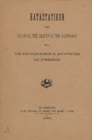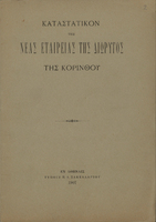 Εξώφυλλο του καταστατικού της εταιρείας με επωνυμία "Νέα Εταιρεία Διώρυγος Κορίνθου".