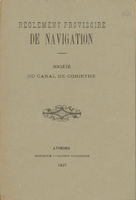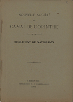 Εξώφυλλο του κανονισμού ναυσιπλοΐας της Νέας Εταιρείας της Διώρυγος της Κορίνθου στη Γαλλική Γλώσσα.