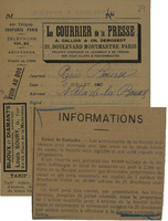 Απόκομμα από τον γαλλικό τύπο, που ενημερώνει τους κατόχους 10.000 μετοχών της ελληνικής Εταιρείας της Διώρυγος της Κορίνθου για την αναγκαστική πώλησή της και για το δικαίωμά τους να εγγραφούν για 2.500 μετοχές της Νέας Εταιρείας της Διώρυγος της Κορίνθου (αναλογία νέας μετοχής προς παλιές: 1:4).