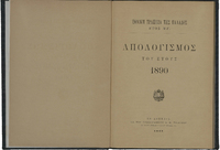 Απολογισμός του έτους 1890, που υπέβαλε ο διοικητής τηι Εθνικής Τράπεζας Π. Καλλιγάς στη Γενική Συνέλευση των μετόχων στις 14 Φεβρουάριου 1891. Αναφέρεται στην παραχώρηση του έργου από την προηγούμενη διεθνή Εταιρεία της Θαλασσίας Διώρυγας της Κορίνθου και στην οικονομική συμμετοχή της Εθνικής σε ομολογίες του δανείου και μετοχές της νέας ελληνικής Εταιρείας της Διώρυγος της Κορίνθου.