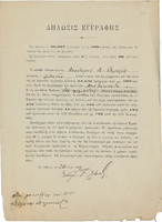 Δήλωση εγγραφής του Θεοδώρου Α. Βλαστού στο δάνειο του 1890 για πενήντα ομολογίες και απόδειξη κατάθεσης στο ταμείο της Εθνικής Τράπεζας 2.500 φράγκων για την πρώτη δόση.