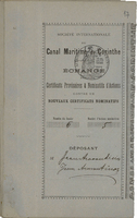 Προσωρινός τίτλος 990 μετοχών των 325 φράγκων της Διεθνούς Εταιρείας της Θαλασσίας Διώρυγος της Κορίνθου.