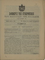 Φύλλο Εφημερίδος της Κυβερνήσεως, αριθ. 176 της 13ης Σεπτεμβρίου 1907, όπου δημοσιεύεται η έγκριση του καταστατικού της Νέας Εταιρείας της Διώρυγος της Κορίνθου