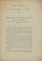 Υπόμνημα του στρατηγού Τυρρ, προέδρου του Διοικητικού Συμβουλίου της Διεθνούς Εταιρείας της Θαλασσίας Διώρυγος της Κορίνθου. Αναφέρεται στο ιστορικό της περιοχής από την ελληνορωμαϊκή εποχή και στην ίδρυση της εταιρείας του το 1881. Επίσης, αναφέρεται στον προϋπολογισμό των εργασιών και τις τεχνικές δυσκολίες που αντιμετώπισε στην προσπάθεια του έως τα τέλη της δεκαετίας του 1880 και αύξαναν το κόστος κατασκευής.