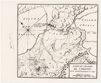 Ασπρόμαυρη, φωτογραφική αναπαραγωγή, στην οποία εμφανίζεται χαρακτικό που απεικονίζει γεωγραφικό χάρτη του Ισθμού της Πελοποννήσου, 1697.