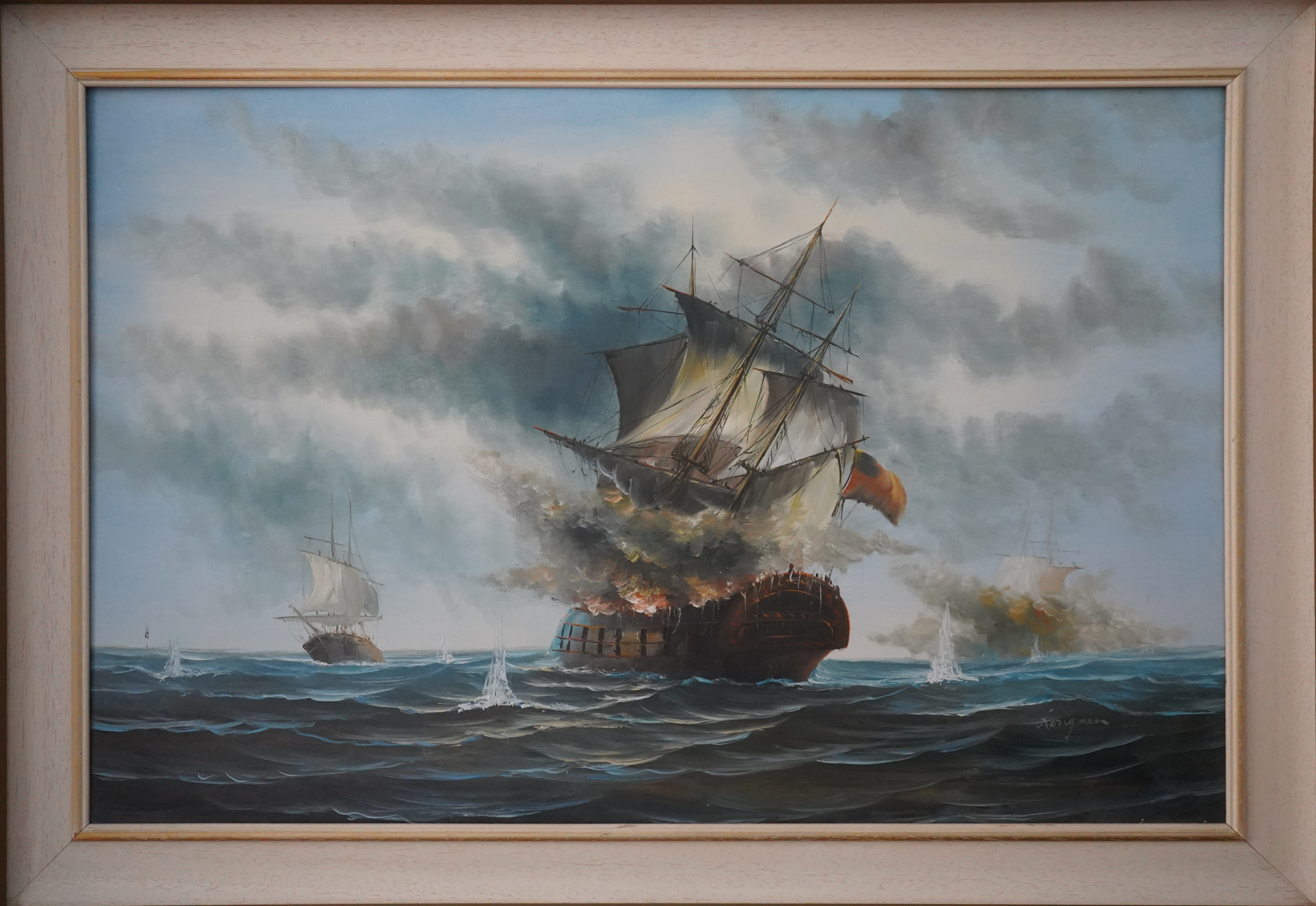 - Θαλασσογραφία στην οποία απεικονίζονται πλοία σε θάλασσα. Δημιουργήθηκε από τον Longman.
