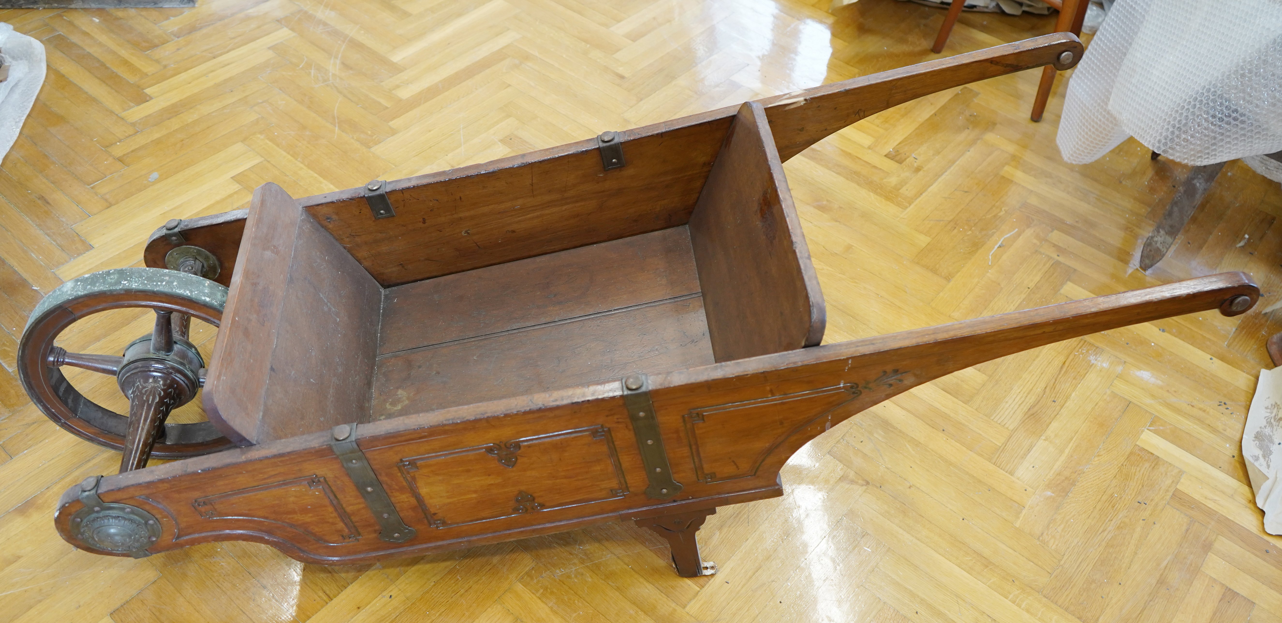Καρότσι εγκαινίων διάνοιξης της διώρυγας. Κατασκευάστηκε από Csepreghy Janos στην Ουγγαρία. Φέρει ανάγλυφο σχέδιο στα πλαϊνά και στο πίσω μέρος του καροτσιού, στα πόδια και στον άξονα του τροχού. Φέρει ανάγλυφα κοσμήματα από χαλκό. Στο πίσω μέρος του καροτσιού υπάρχει εγχάρακτο σε χαλκό το όνομα του δημιουργού.
