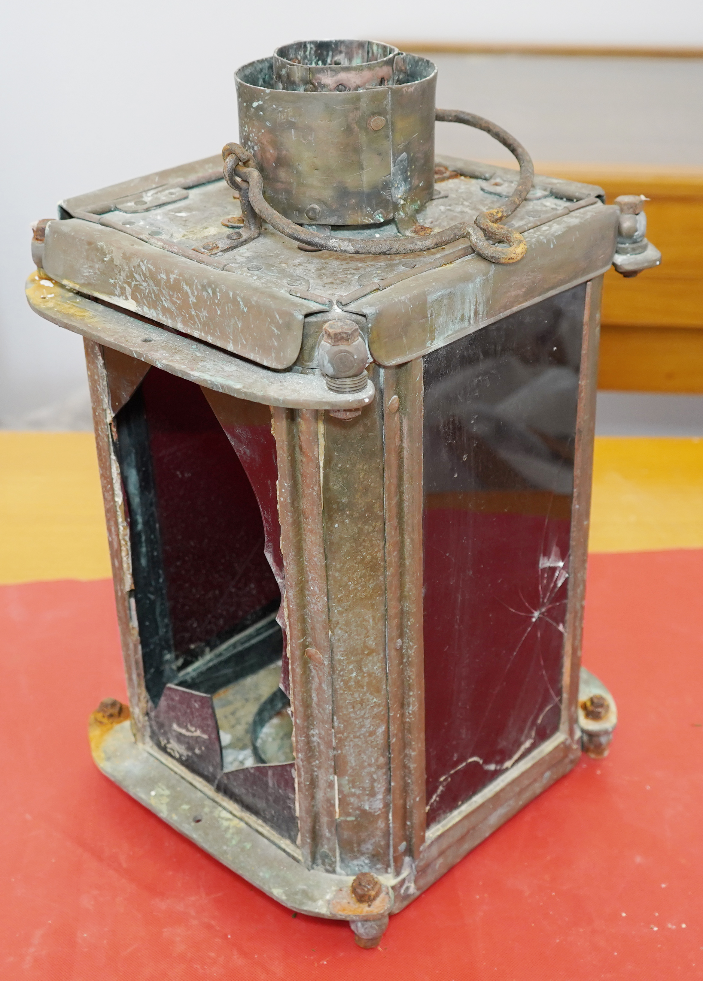 - Ορειχάλκινος φανός, ορθογώνιος με λαβή για μεταφορά και ανάρτηση.