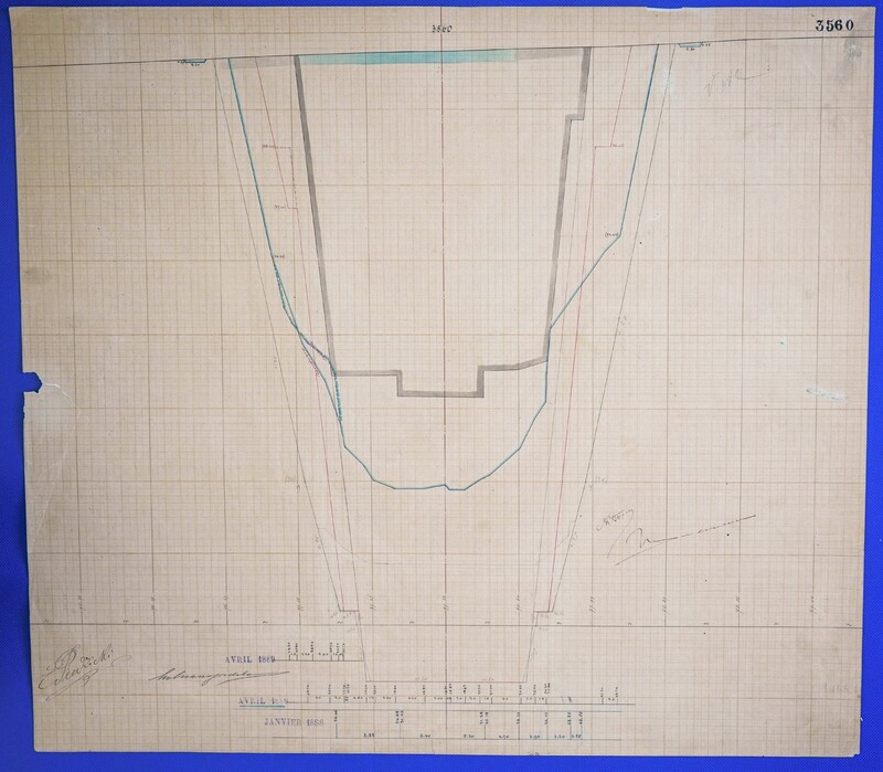 - Έγχρωμο σχέδιο προόδου εκσκαφικών εργασιών (μηκοτομή) χιλ. σημείου 3560 με μελάνι και έγχρωμο μολύβι σε χαρτί μιλιμετρέ.