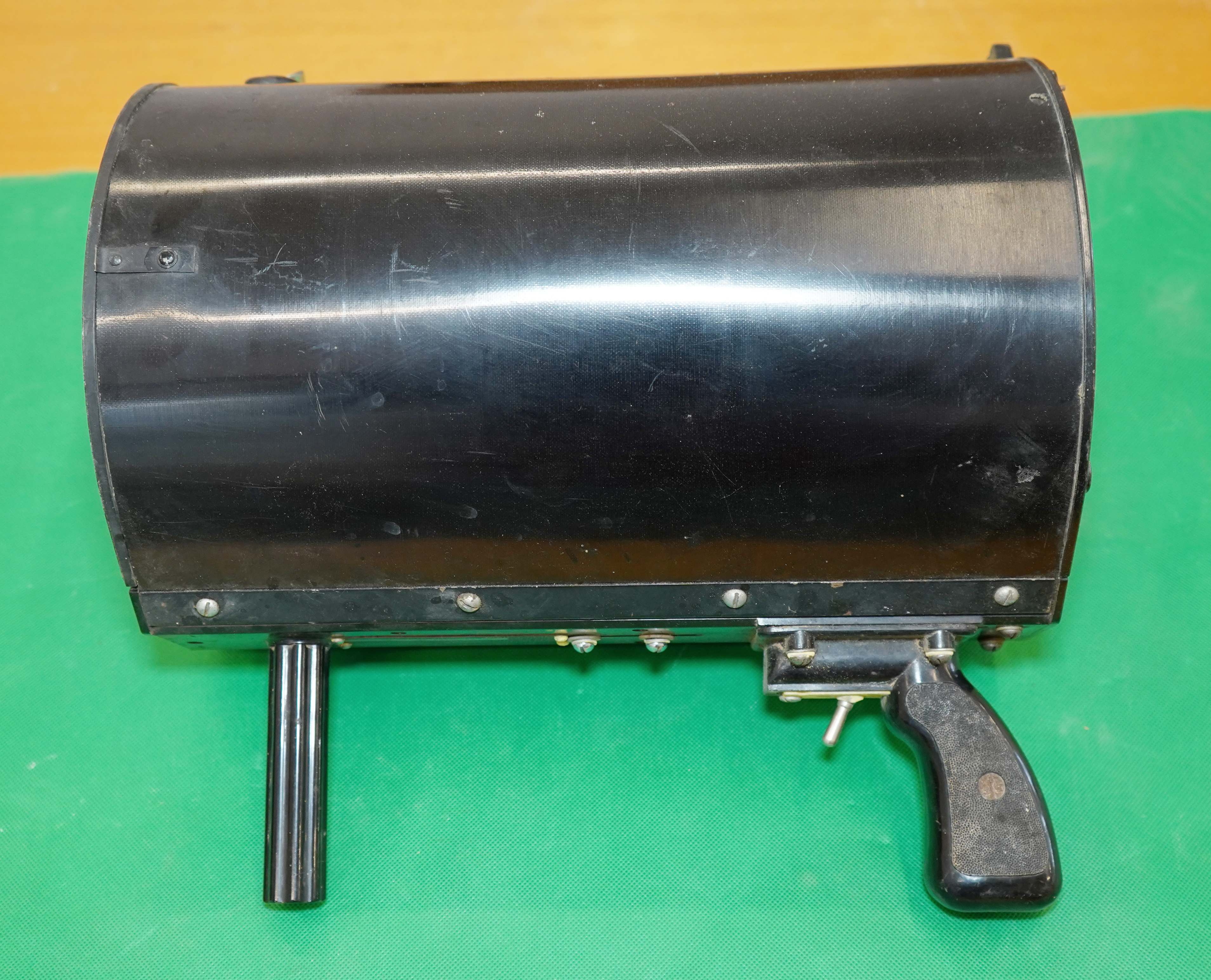 Φορητός προβολέας 110 V και καλώδιο μέσα σε ξύλινο κιβώτιο με δύο πλαϊνές λαβές. Σε ξεχωριστό διαμέρισμα κάτω από το καλώδιο βρίσκονται 15 από τους συνολικά 20 ηλεκτρικούς λαμπτήρες αντικατάστασης. Κατασκευάστηκε από την εταιρεία Crouse-Hinds Co στις ΗΠΑ.