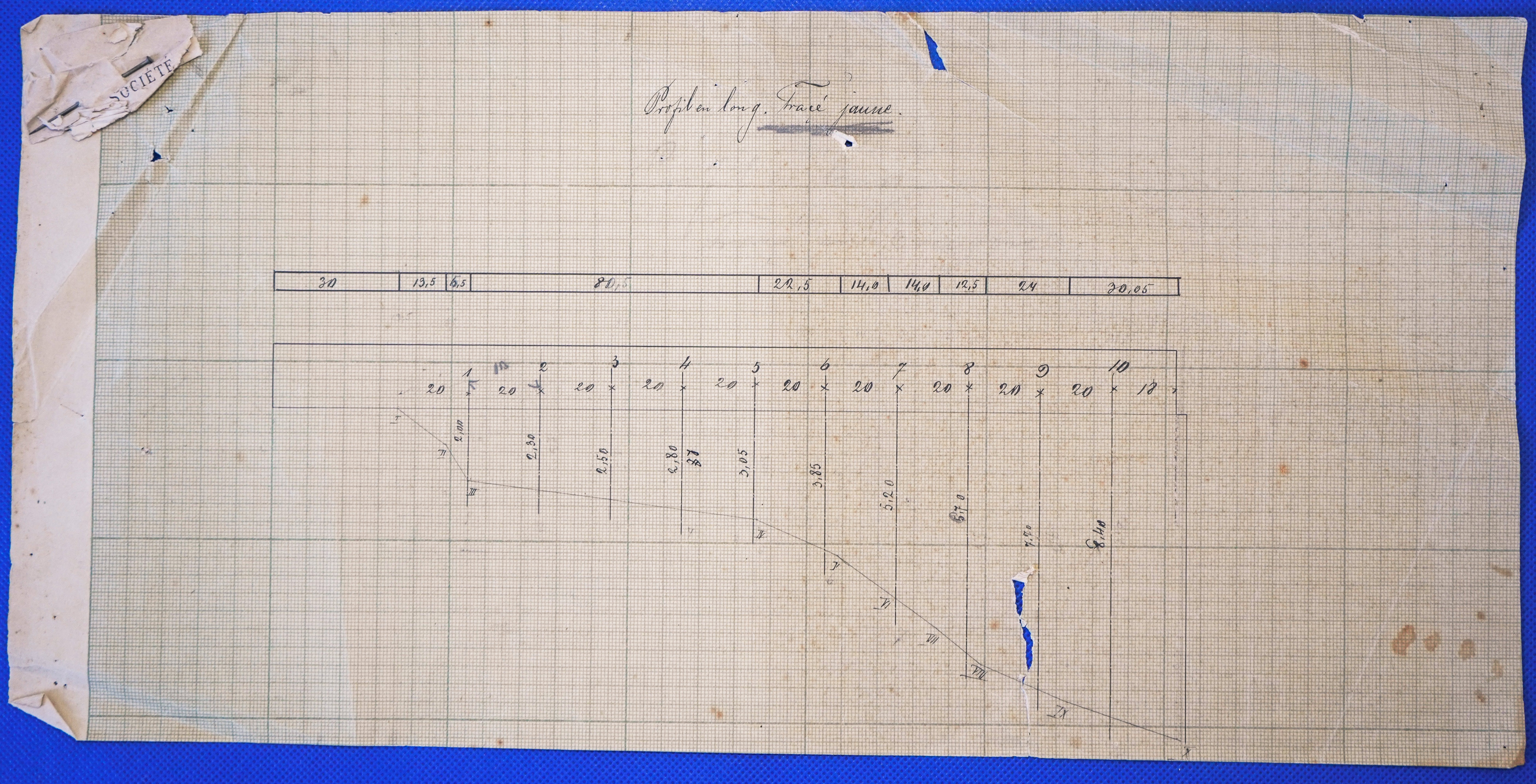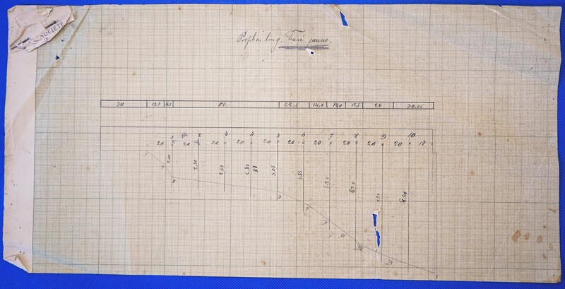 - Μηκοτομή σε χαρτί μιλιμετρέ συνοδευόμενη από χειρόγραφο σημείωμα στα γαλλικά.