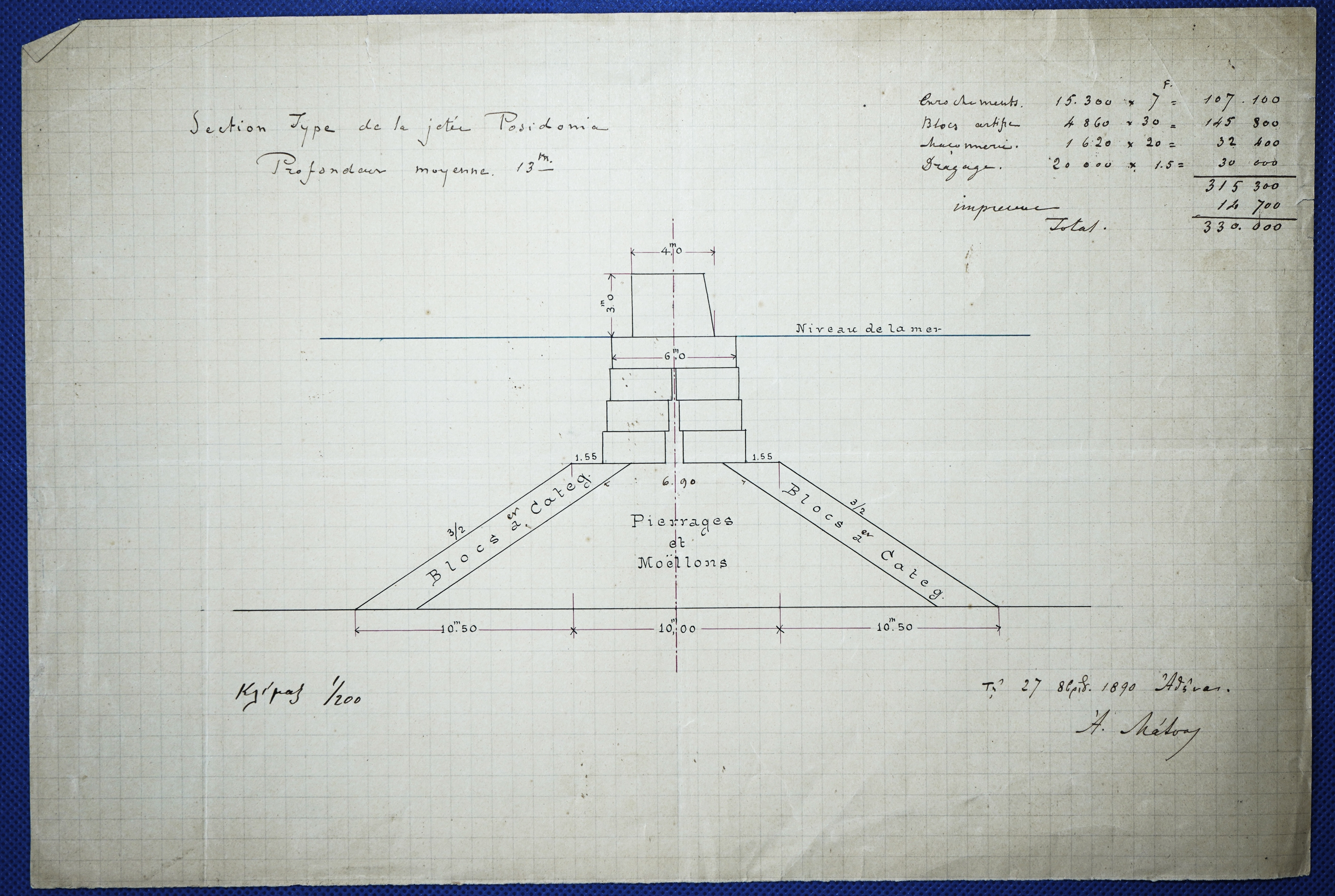 - Σκαρίφημα τομής του προβλήτα Ποσειδωνίας.
