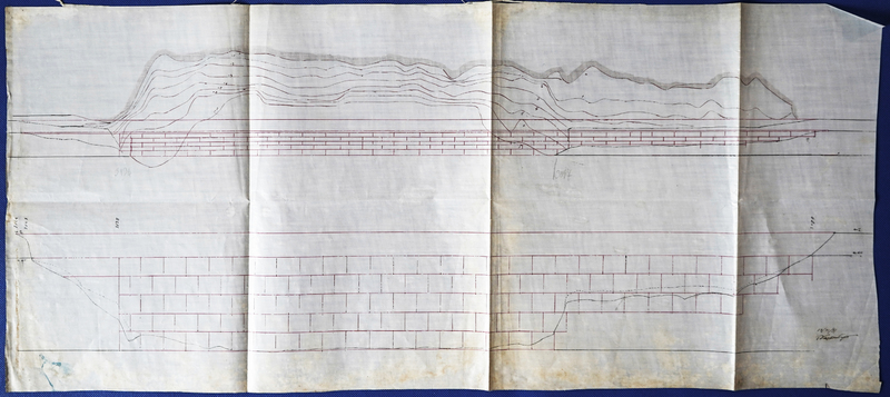 - Τομή της Διώρυγας κατά μήκος με απεικόνιση κρηπιδώματος