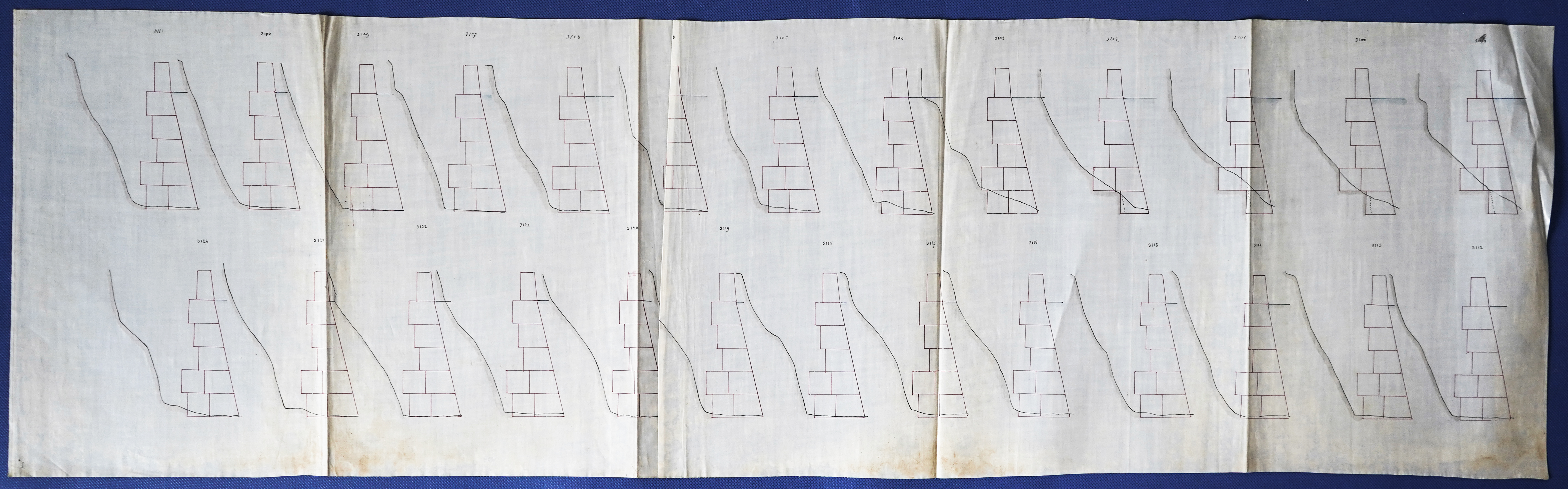 - Τομές πρανών με απεικόνιση κρηπιδώματος και σήμανση χιλιομετρικών σημείων.