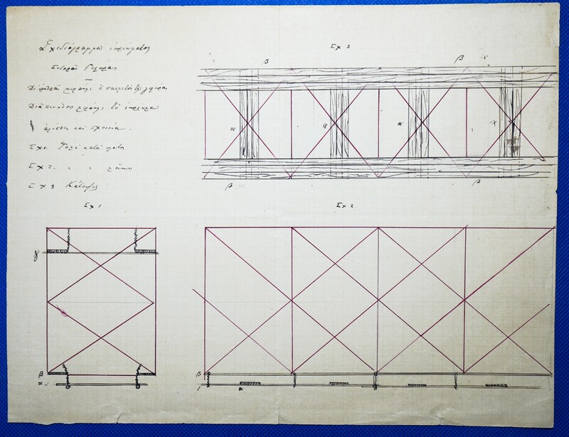 - Σχεδιάγραμμα ικριώματος σιδερένιας γέφυρας (3 σχέδια).