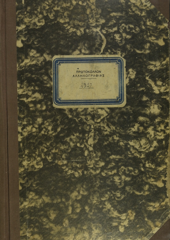 - Πρωτόκολλο αλληλογραφίας στο οποίο καταγράφονται τα εισερχόμενα και εξερχόμενα έγγραφα του έτους 1957.