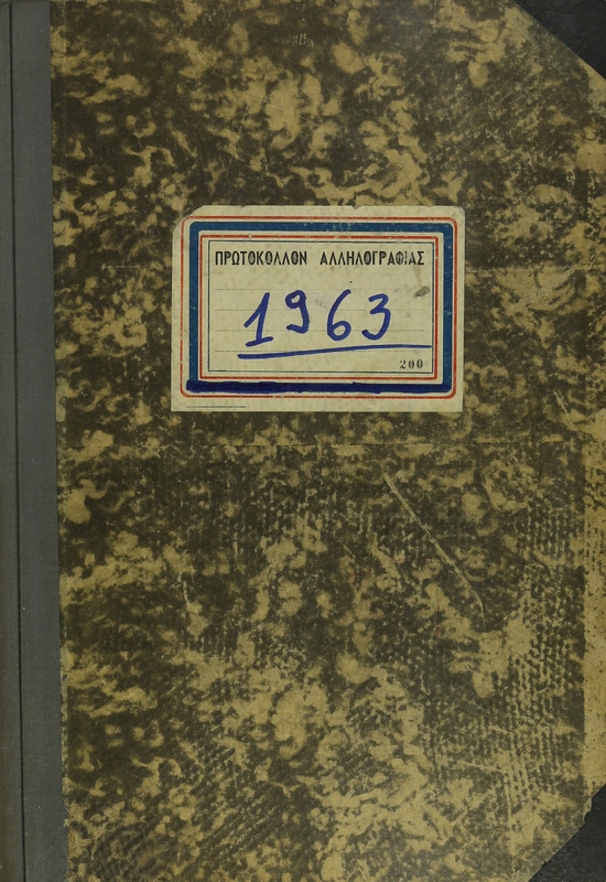 - Πρωτόκολλο στο οποίο καταγράφονται εισερχόμενα και εξερχόμενα έγγραφα του έτους 1963.