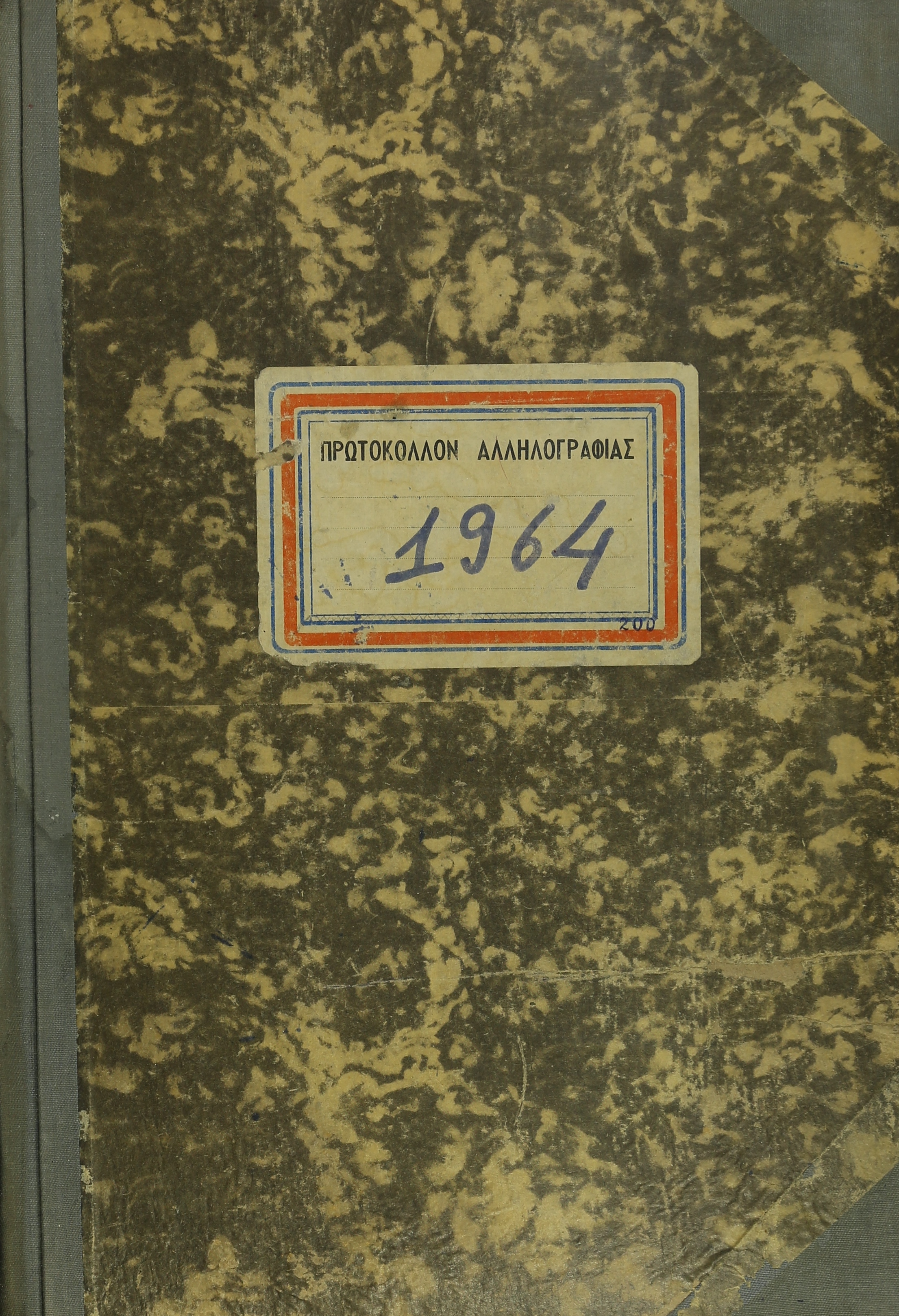 - Πρωτόκολλο αλληλογραφίας στο οποίο καταγράφονται εισερχόμενα και εξερχόμενα έγγραφα του έτους 1964.
