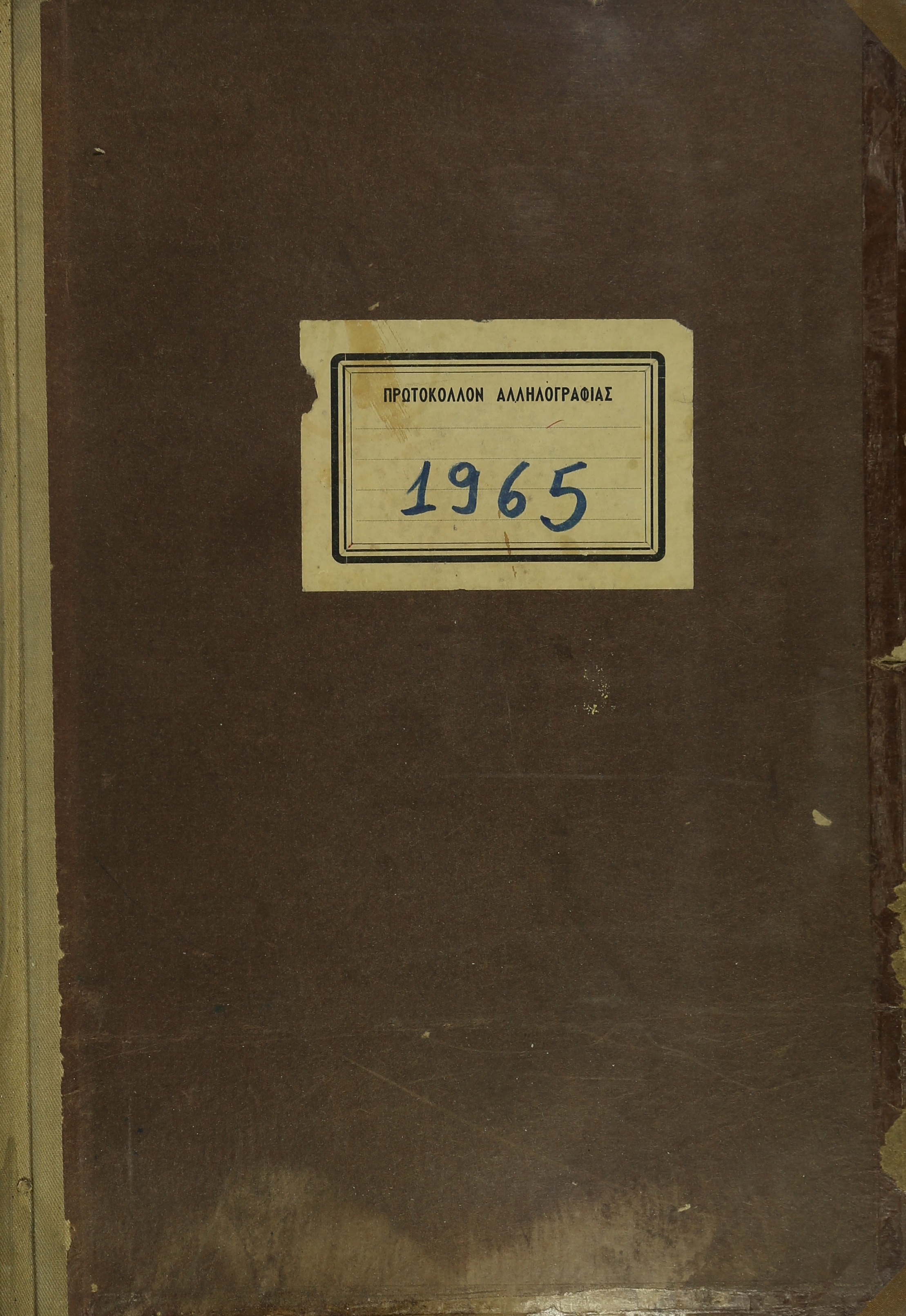 - Πρωτόκολλο αλληλογραφίας στο οποίο καταγράφονται εισερχόμενα και εξερχόμενα έγγραφα του έτους 1965.