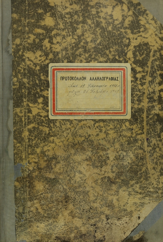 - Πρωτόκολλο αλληλογραφίας στο οποίο καταγράφονται εισερχόμενα και εξερχόμενα έγγραφα κατά την περίοδο 19 Φεβρουαρίου 1966 - 21 Νοεμβρίου 1967.