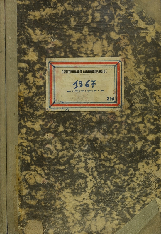 - Πρωτόκολλο αλληλογραφίας στο οποίο καταγράφονται εισερχόμενα και εξερχόμενα έγγραφα του έτους 1967.