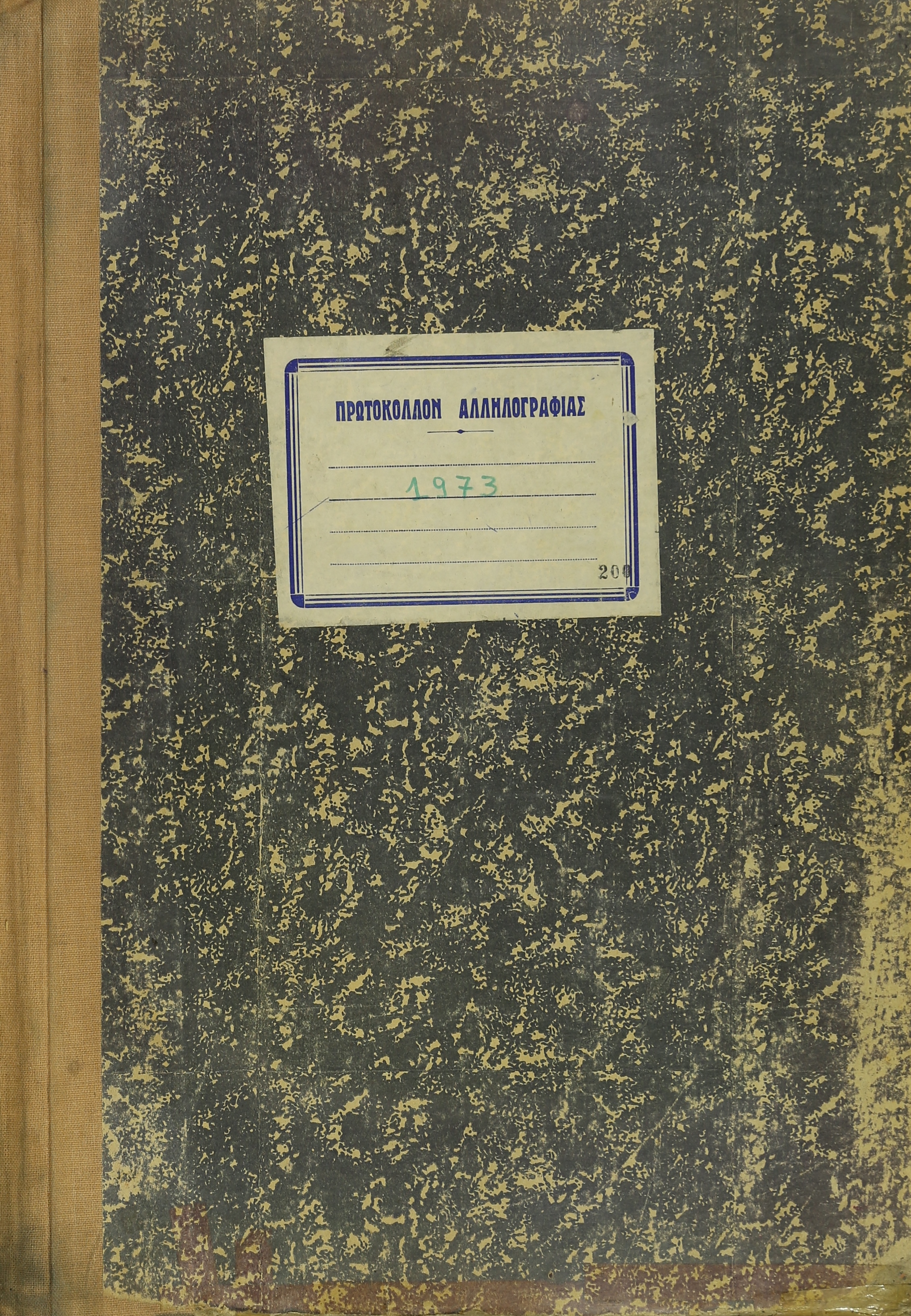 - Πρωτόκολλο αλληλογραφίας στο οποίο καταγράφονται εισερχόμενα και εξερχόμενα έγγραφα του έτους 1973.
