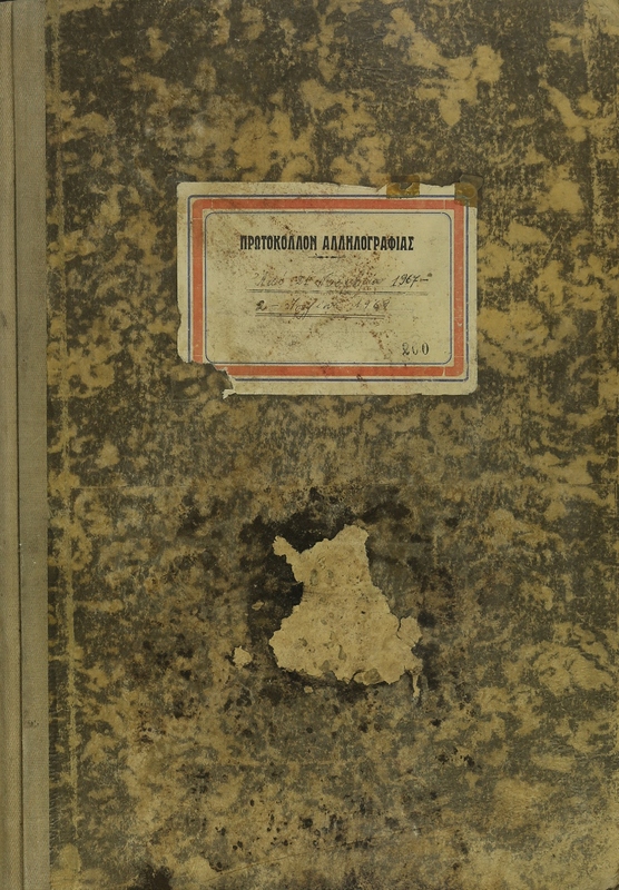 - Πρωτόκολλο αλληλογραφίας στο οποίο καταγράφονται εισερχόμενα και εξερχόμενα έγγραφα κατά την περίοδο 1 Νοεμβρίου 1967 - 2 Ιουλίου 1969.