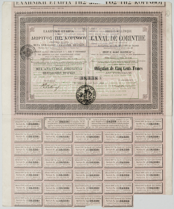- Τίτλος μιας ανώνυμης ομολογίας των πεντακοσίων φράγκων.