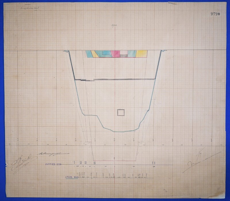 - Color drawing of excavation progress (Longitudinal Section) of kilometer point 2720 in ink and colored pencil on graph paper.
